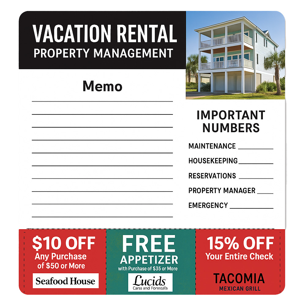 Promo Magnets: Property info, contact numbers, or QR codes that drive rebooking.